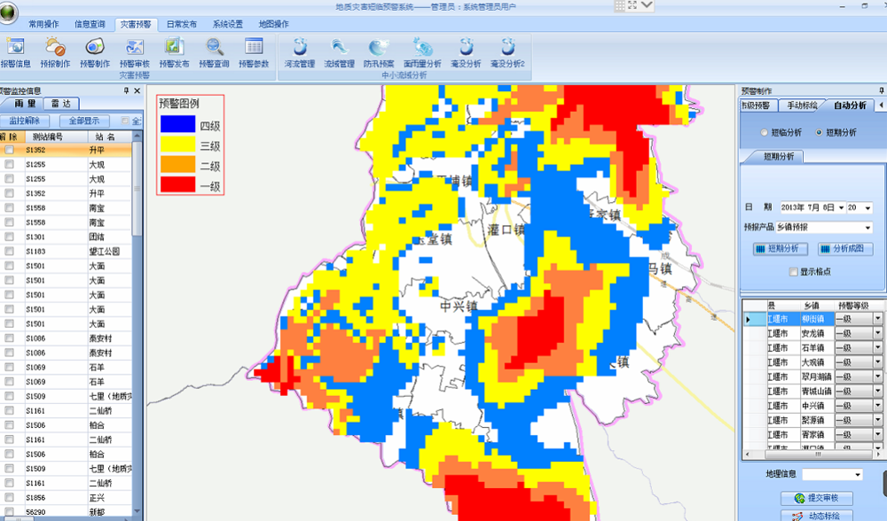 预警预报分析系统是主业务系统,包括洪水监测、中小流域预警预报、中小流域综合分析、视频监测、综合会商、防汛调度、信息查询、系统管理、地图管理等功能。